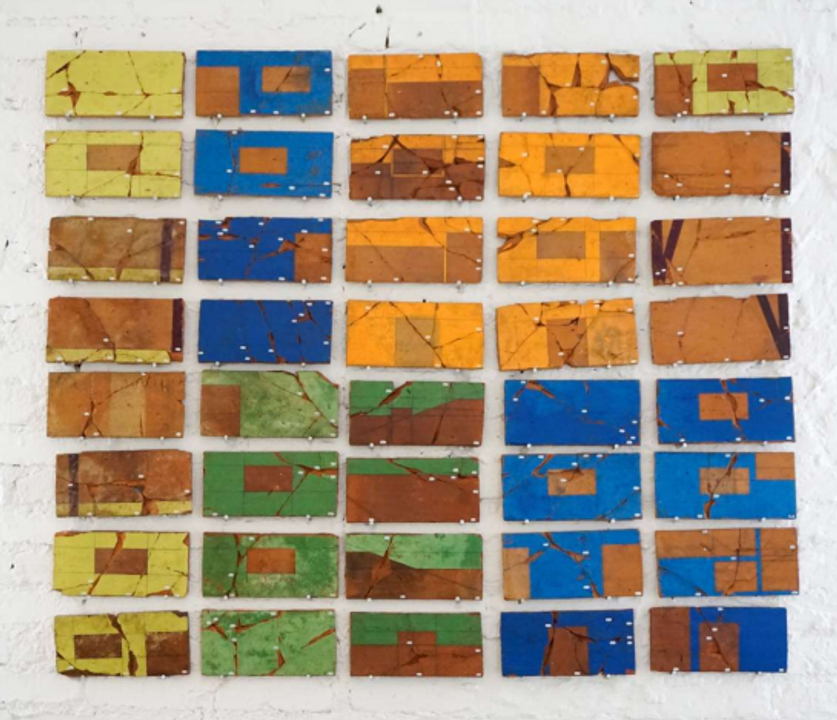 Óleo sobre rasillas dejadas caer al piso y vueltas a recomponer 13,5 x 29 x 2 cm (c/u)