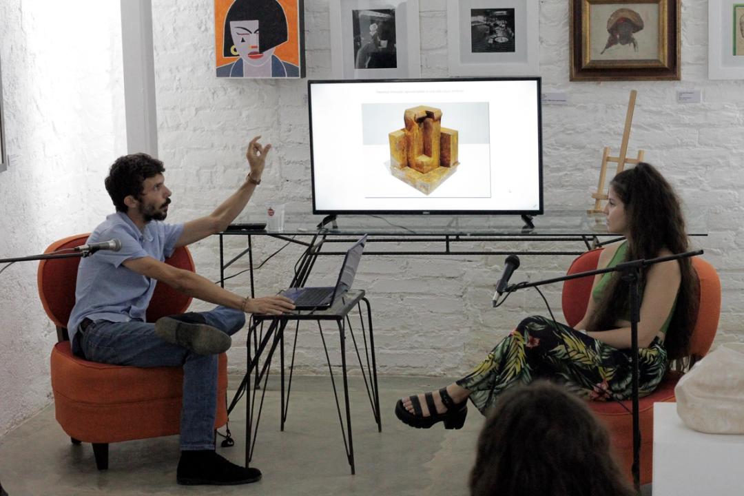 Los participantes del conversatorio pudieron hacer un recorrido por la poética artística en los últimos proyectos expuestos por Sergio Marrero. Un creador que busca ofrecer nuevas visiones del Sistema Arte en una dinámica relación con la ciencia. Nos comentó sobre sus experiencias creativas en conjunto con el artista Leonardo Luis Roque desde la presentación de las obras de las exposiciones Realidad Inducida. También, nos explicó de sus más recientes creaciones desde sus numerosos dibujos de la serie Cronotopo, que aún se encuentran en proceso y que advierten una relación directa con la temporalidad. Una mariposa entre la niebla, su más reciente exhibición de marzo del actual año en Galería La Nave, la analizó junto al resto de los espectadores que debatieron en torno a las ideas que maneja el artista para la creación de sus obras. Fue otra tarde de experiencias provechosas para el arte en la cual se pudo conocer sobre un artista que se encuentra en proceso de creación e investigación de manera paralela en sus proyectos.